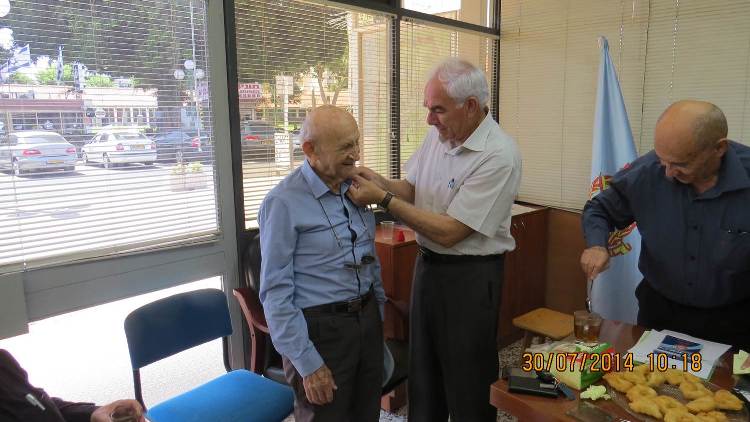 בפגישה שקדמה לביקור במשרדי הסניף עם אנשי המחוז ניתנה סקירה ע"י יו"ר הסניף עמרם מלול על הפעילות הענפה במבצע "צוק איתן". במעמד זה ענד יו"ר הסניף את סמל לוחם תש"ח למר אריאלי דוד.