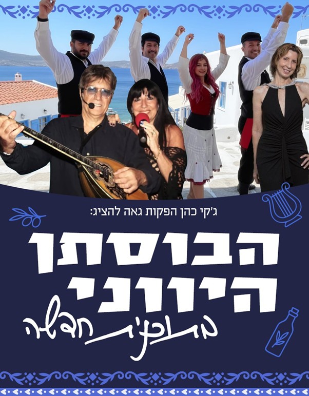 20:00 הופעת טברנה ישראלית עם להקת הבוסתן היווני עם הסולנית רוחלה אלה, זמרת הליווי של אריס סאן במיטב הקלאסיקות היווניות עם 3 זמרים ,5 נגנים, 3 רקדני סירטאקי. שירים יווניים שאהבנו שחלקם תורגמו לעברית, מוסיקה סוחפת הגורמת לקהל לשיר ולרקוד.