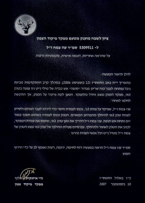 הציון לשבח שקיבל עוז מאלוף פיקוד הצפון