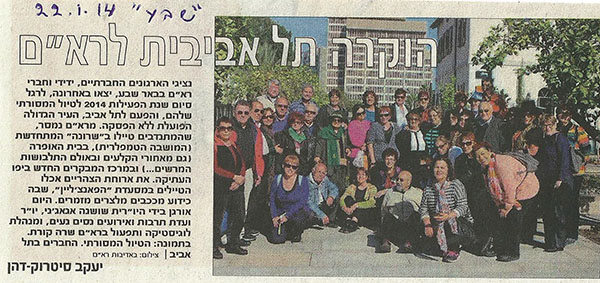 נציגי הארגונים החברתיים, ידידי וחברי רא"ם בבאר שבע, יצאו לאחרונה לטיול המסורתי לסיכום שנת העבודה 2014. בארוע השתתף יו"ר המחוז מר גדעון שני, עומד שני מצד שמאל של התמונה, וגם הגב' ג'ניה לנדאו, מתנדבת במזכירות המחוז