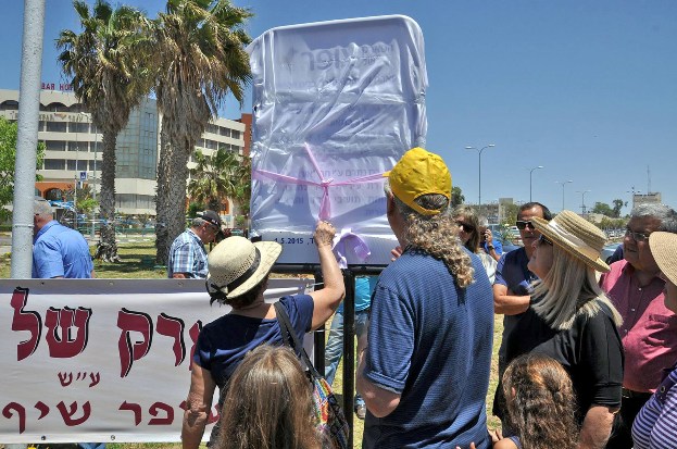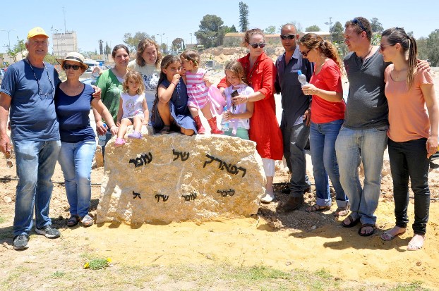 משפחת שיף ליד שלט ההקדשה לעופר ז"ל