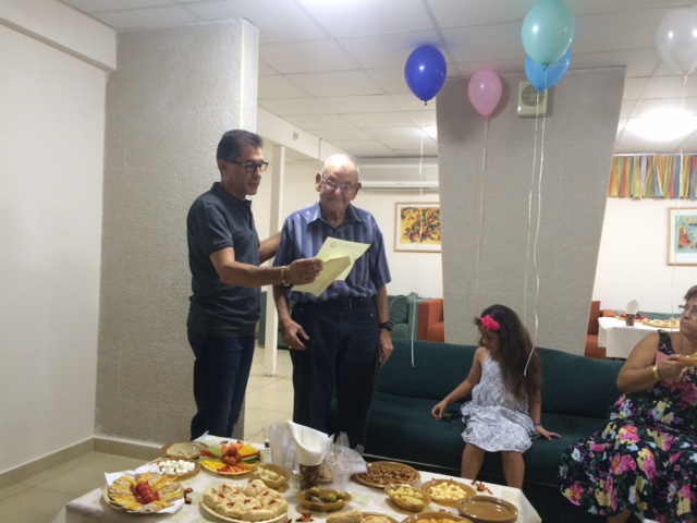 יו"ר הסניף העניק לחבר תעודת גבורות בנוכחות בני משפחתו ואיחל לו בריאות ואריכות ימים.