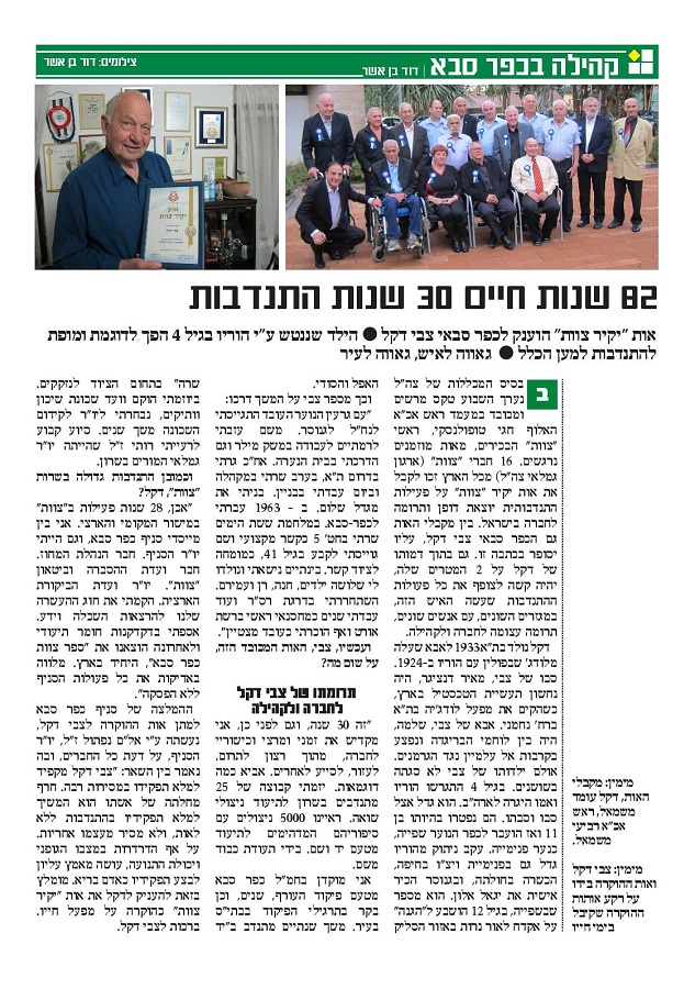 אות "יקיר צוות" הוענק לצבי דקל