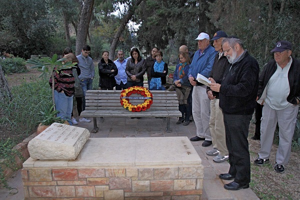 בתמונה: יו"ר מחוז ירושלים, הרב יוסף וסרמן, העורך את טקס האזכרה, ולידו יו"ר ארגון "צוות", ד"ר ברוך לוי, ואחיו, האומרים קדיש לזכרו של משה לוי ז"ל.