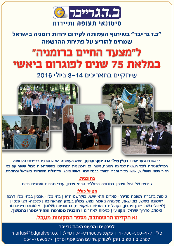 "מצעד החיים" ברומניה יצעד גם השנה, בין התאריכים 8-14 ביולי 2016. תאריכים אלו נבחרו מכיוון שהם כוללים את מועדי הפוגרום ביאסי לפני 75 שנה והפוגרום בדורוהוי שברומניה. מטרת המצעד לשמר את זכר השואה והגבורה של יהדות רומניה. במהלכו משולבים ביקורים באתרים היסטוריים, באנדרטאות ובבתי עלמין של יהודי רומניה והשתתפות בטקסי הזיכרון, במדי ייצוג של "צוות". בנוסף, משתתפי המצעד ייקחו חלק בערב פולקלור רומני וטיול בנופיה המרהיבים של רומניה.