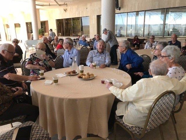 כ-40 חברי סניף "צוות" בכפר סבא, המתגוררים בבתי הדיור המוגן בעיר, התכנסו ברחבת הבריכה ב"מגדלי הים התיכון" להרמת כוסית לקראת חג הפסח.