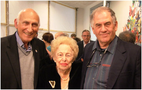 אסתר הרליץ בעת הענקת הפרס בירושלים. מימינה יו"ר "צוות" ברוך לוי ומשמאלה ירמי אולמרט