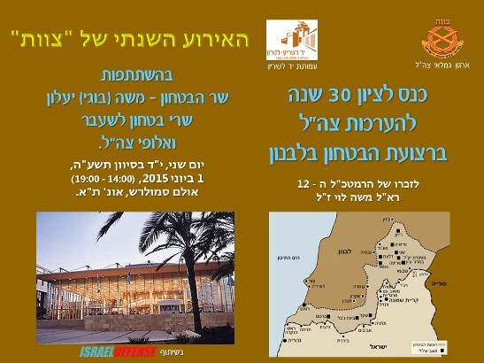 כנס לציון 30 שנה להיערכות צה"ל ברצועת הביטחון, בשיתוף "צוות" ועמותת יד לשריון, לזכרו של הרמטכ"ל ה-12 רא"ל משה לוי ז"ל, ייערך ביום שני, י"ד בסיוון תשע"ה, 1 ביוני 2015, באולם סמולרש באוניברסיטת תל אביב, בהשתתפות שרי הביטחון לשעבר משה ארנס, יצחק מרדכי ואהוד ברק ואלופי צה"ל בעבר ובהווה.