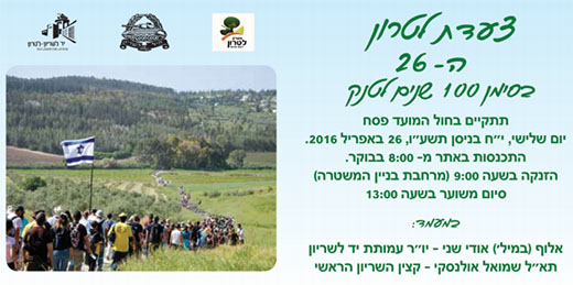 הצעדה תתקיים בחול המועד פסח, יום שלישי, 26 באפריל 2016.