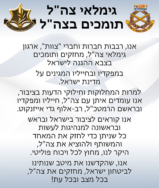 הרמטכ״ל ביקש להודות על התמיכה ליו״ר ״צוות״ ולחבריו, והביע הערכה על החיזוק והחיבוק לצה״ל בעת הזו, דווקא מציבור ששרת בצה״ל במשך שנים רבות ותרם לביטחון ישראל.