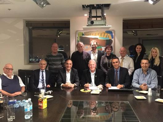 מעמד החתימה על ההסכם במשרדי חברת מנורה מבטחים ברמת גן