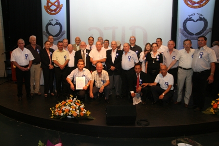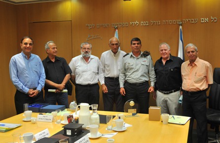 מימין לשמאל: אפרים לפיד, יו"ר ועדת קשרי ציבור, מוטי בר דגן, סגן יו"ר "צוות" ויו"ר מחוז השרון, הרמטכ"ל רב אלוף אשכנזי, היו"ר ד"ר ברוך לוי, הרב יוסף וסרמן, יו"ר מחוז ירושלים, אבי תלם, יו"ר מחוז הצפון ודן נדיב, מנכ"ל צוות