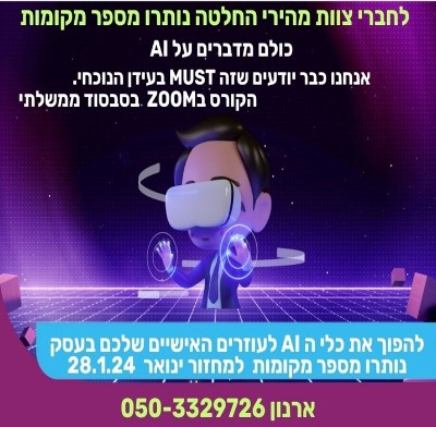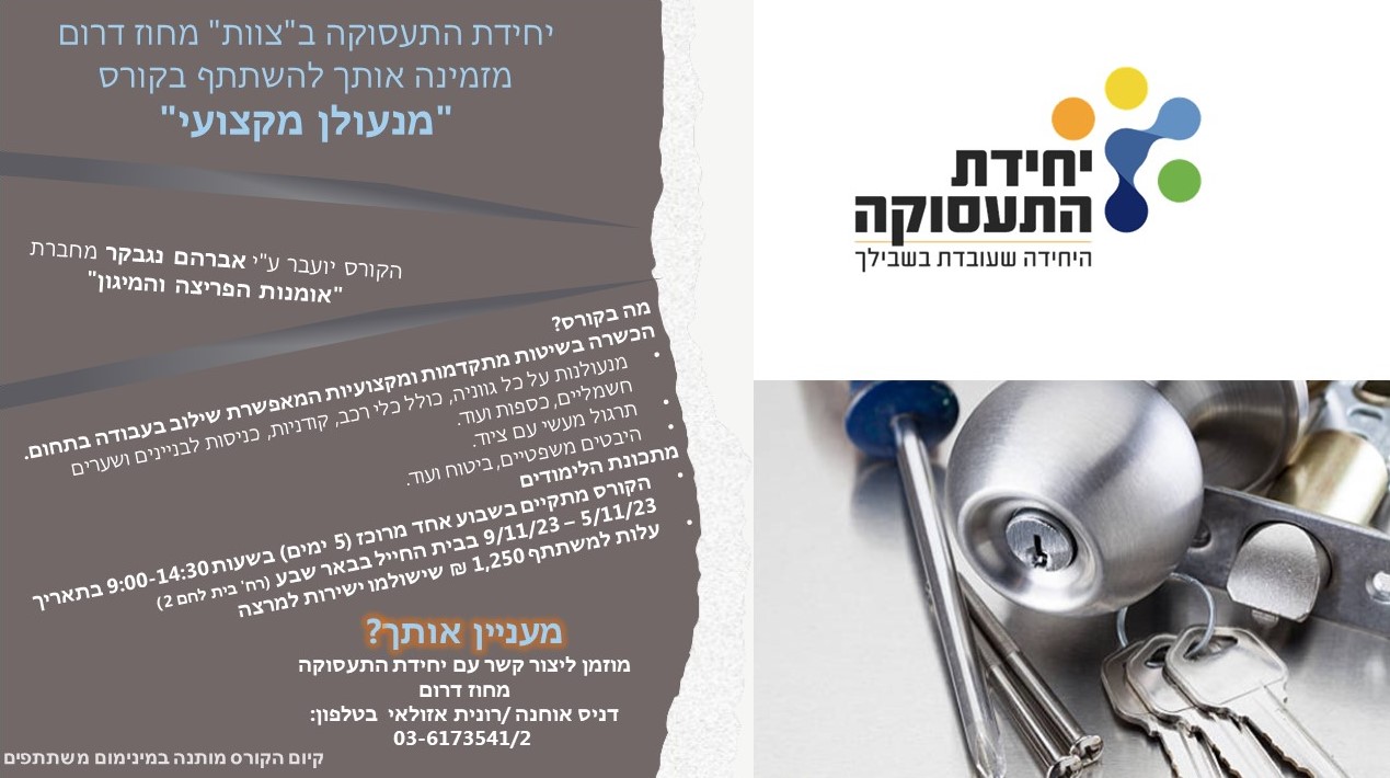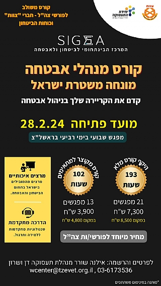 הקורס יחל בתאריך 28/1/2024 הקורס מיועד לחברי "צוות" פורשי צה"ל, במחיר מיוחד למהירי החלטה, המעוניינים מוזמנים לפנות למנהל תעסוקה מחוז יהודה - ארנון משהקרא עוד