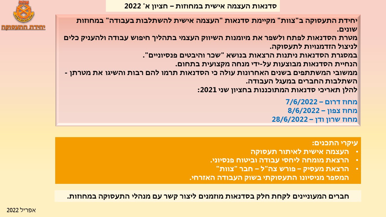 המעוניינים לקחת חלק בסדנאות מוזמנים ליצור קשר עם מנהלי התעסוקה במחוזות.קרא עוד