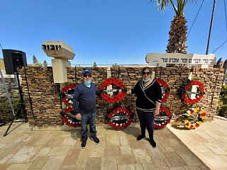 בערב יום הזכרון לחללי צה"ל תשפ"א, שנערך ב-13.4.21, הניחו גב' ריטה נחמיה, סגן יו"ר סניף ערד, ומר רפי חיון, גזבר הסניף, זר זיכרון בבית יד לבנים בעירקרא עוד